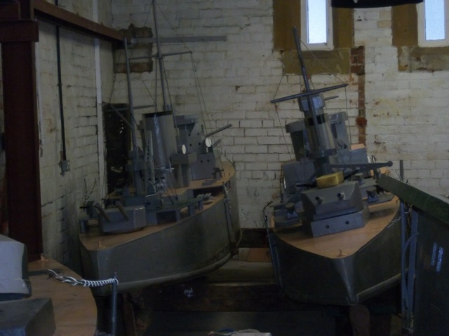 On October 23rd 2013 a few members managed to visit the 'dry dock' where the boats involved in Scarborough's Peasholm Park 'Naval Battle' are repaired and refurbished each winter. These few photos might give you an idea of the actual size of the boats and what happens to them when they aren't sailing. The show has been staged in Scarborough since the 1920's and these boats date back to the 1950's.